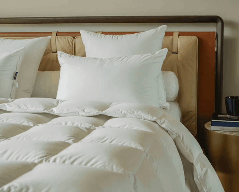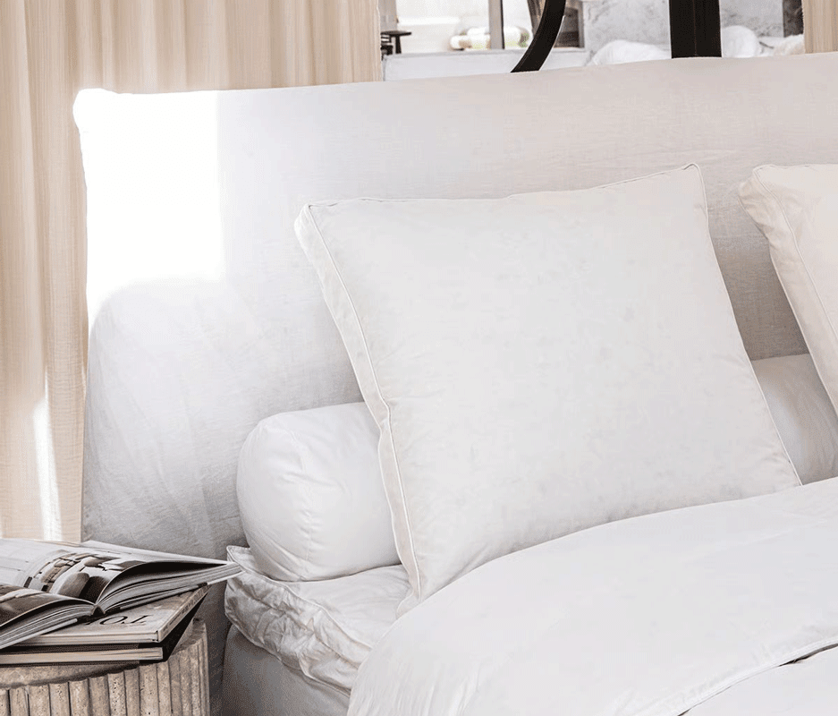 Oreiller Arosa Light naturel en duvet d’Oie supérieur extra gonflant anti-acariens Proneem® Fabriqué en France par Drouault. Ligne Haute Couture...