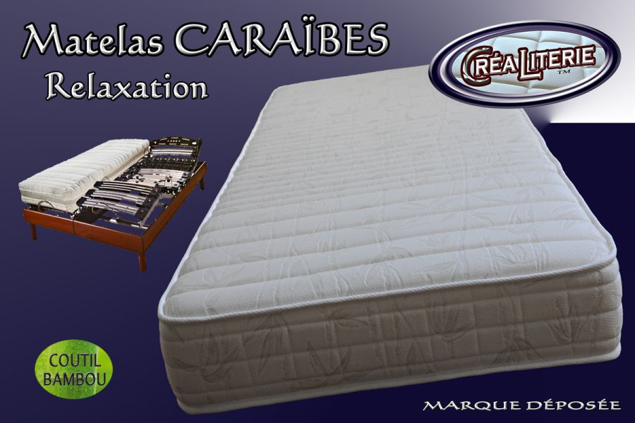 Matelas CARAÏBES relaxation haute résilience 35 kg/m³(coutil bambou) Fabrication Française par Créaliterie.