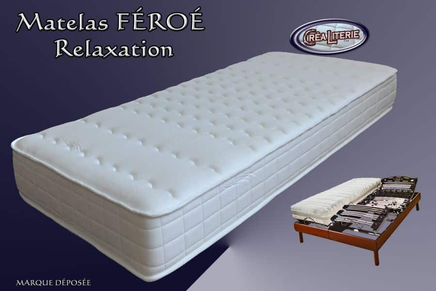 Matelas Féroé relaxation à mémoire de forme + latex 84 kg/m³ multizones micro perforé Fabrication Française par Créaliterie Matelas 100% latex multizones micro perforé densité 84…