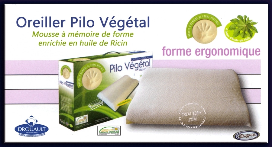 Oreiller Drouault PILO Végétal Ergonomique à mémoire de forme enrichie en huile Végétale Fabrication Française