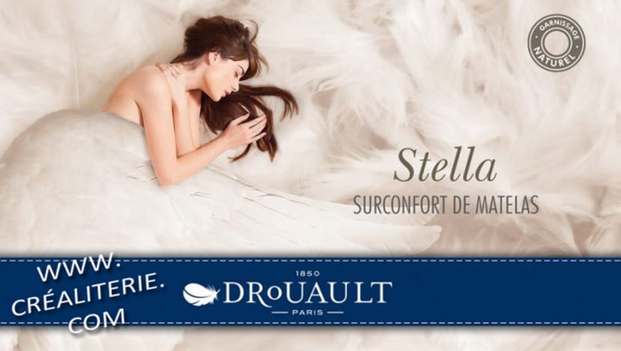 Surmatelas STELLA 1200 g/m² en duvet oie et canard haute qualité, origine France. Anti-acariens Proneem® 100% d’actifs naturels Fabrication Française par Drouault.